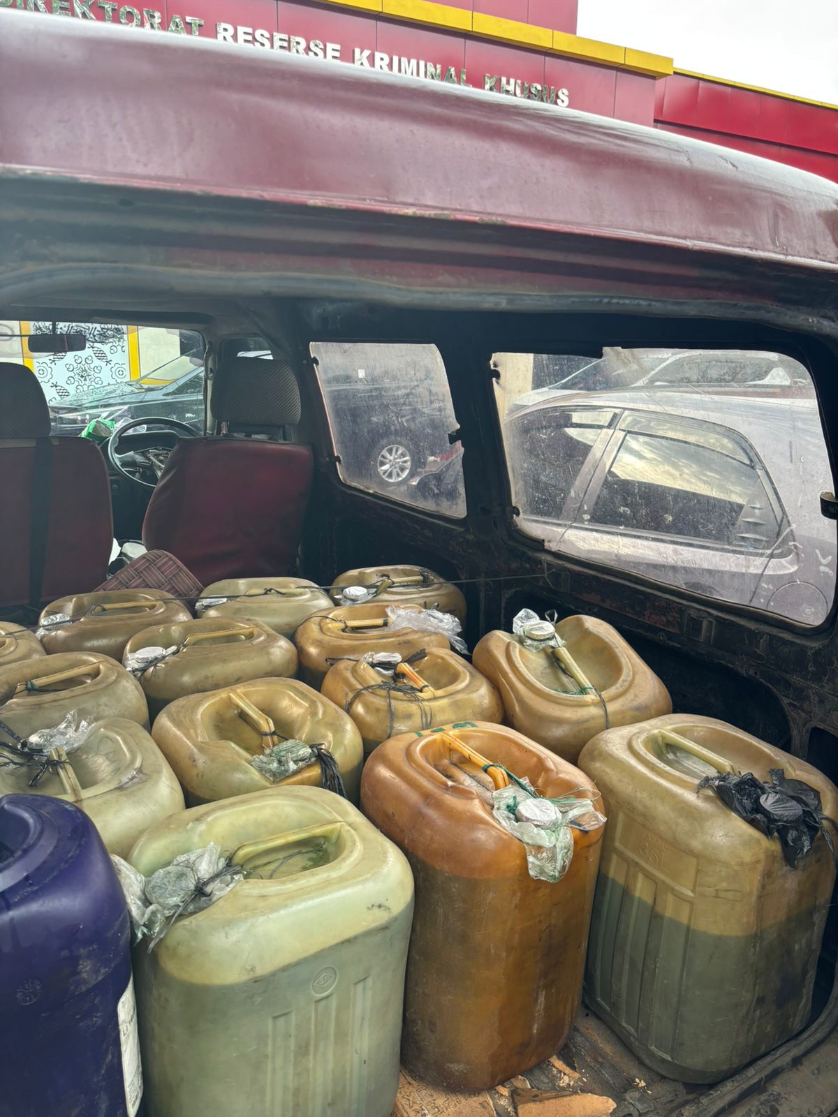 Polisi menyita sejumlah barang bukti berupa satu unit mobil Suzuki Futura serta 15 jeriken berisi Pertalite, dengan total volume ratusan liter.